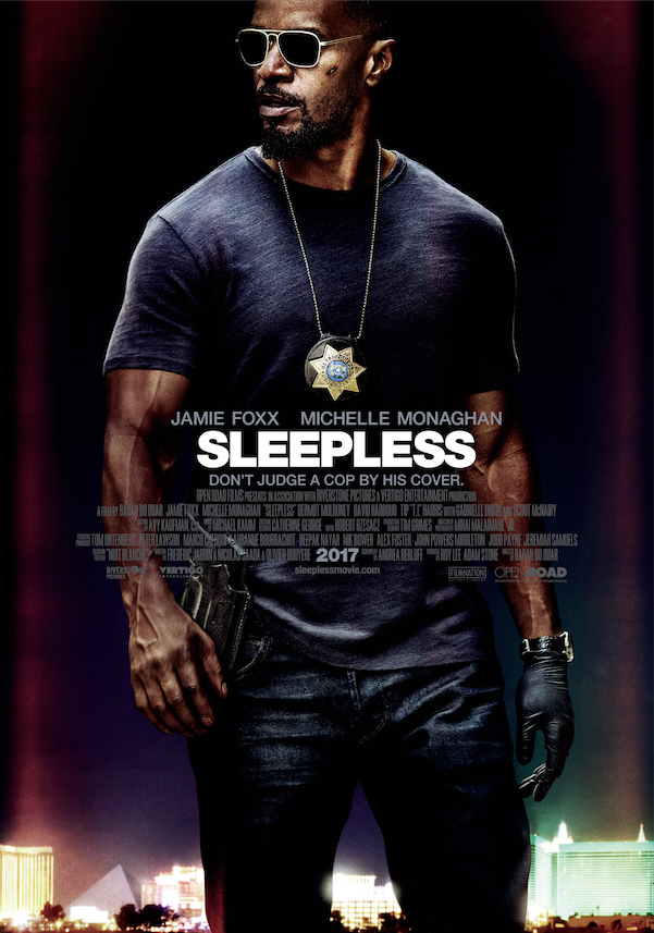 Sleepless, este remake-ul american al filmului de acțiune franţuzesc Sleepless Night, în care joacă Jamie Foxx, Michelle Monaghan, și Gabrielle Union, unde personajul lui Jamie Foxx (Django Unchained), Vincent Downs, este un ofițer de poliție sub acoperire din Las Vegas, ce este prins într-o rețea complicată de polițiști corupți și este căutat de un gangster mafiot. Atunci când un jaf nu merge bine, un echipaj de gangsteri criminali, îl răpește pe fiul adolescent Downs. Într-o singură noapte, Vincent Downs, va trebui să-şi salveze fiul, să se sustragă unei investigații federale și să aducă răpitorii în fața justiției.